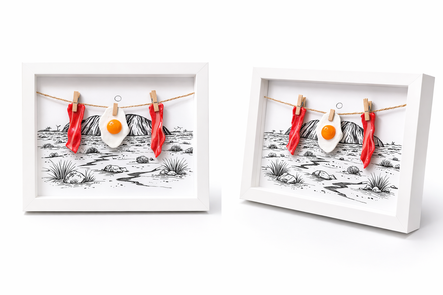 Add a touch of humour, nostalgia, and unmistakable Australian charm to your walls today. This 3D polymer clay bacon and eggs artwork is designed to spark conversation and instantly capture attention.
